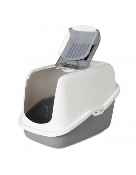 La gatera para gatos "Nestor" tiene una forma muy moderna con sus esquinas redondeadas. La parte frontal tiene bisagras y simplifica enormemente la limpieza. La puerta se abre junto con el soporte superior del filtro para poder acceder al interior sin desmontar la tapa. Se incluye un filtro de carbón activado. Se recomienda el uso de bolsas higiénicas para facilitar aún más la limpieza.