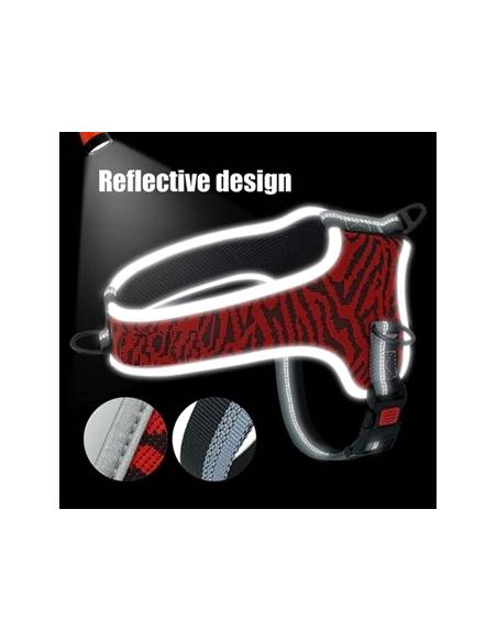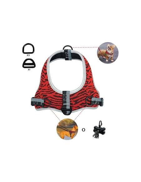 Arnés para perro con 3 enganches. Ideal para enseñarlo a caminar a tu lado. Este arnés educativo es acolchado y resistente. Diseño que permite un mayor ajuste y sujeción para evitar escapes y rozaduras. Fácil de colocar incluso en los perros más inquietos. Regulable con múltiples ajustes. Cintas reflectantes para aumentar la seguridad. Nylon acolchado y forrado con tejido transpirable. Cierre con bloqueo de seguridad.