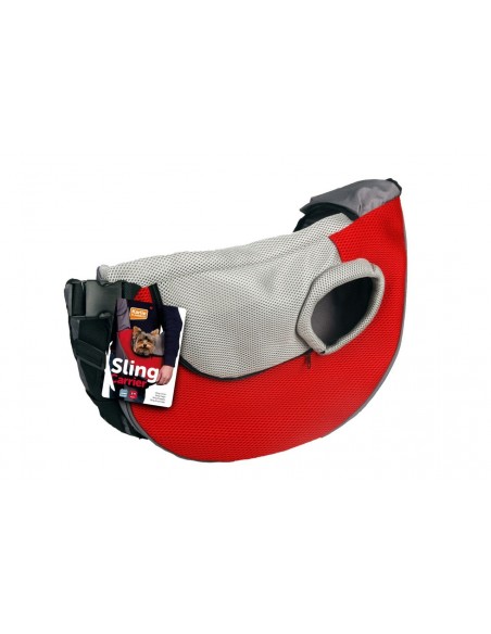 PARA GATOS Y PERROS. MOCHILA BOLSO BANDOLERA ROJO/GRIS.