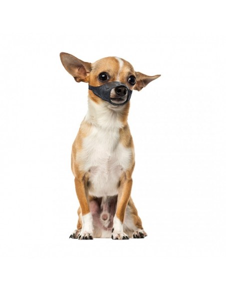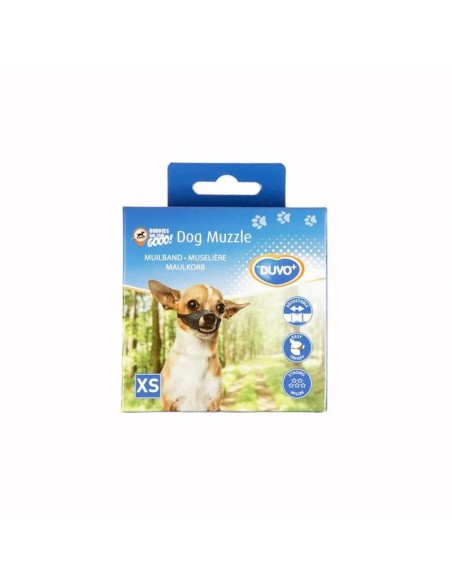 Este comodo bozal de nylon mantiene las mandibulas de su perro firmemente unidas y evita que muerda, mastique y ladre. La banda deja suficiente espacio para que tu perro beba y jadee. Coloque el hocico sobre la nariz del perro. Sujete las correas con el cierre ajustable y apriete la correa. No lo fije mas de lo necesario! Debe haber espacio suficiente para colocar un dedo entre el hocico y la boca de su perro.