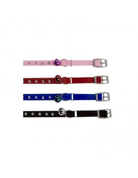 Suaves y elegantes collares para gato, confeccionados en terciopelo de intensos colores que aportan confort y seguridad. Tiene detalles de brillantes tanto en el collar como en la hebilla. Incluye un cascabel a juego con el color.