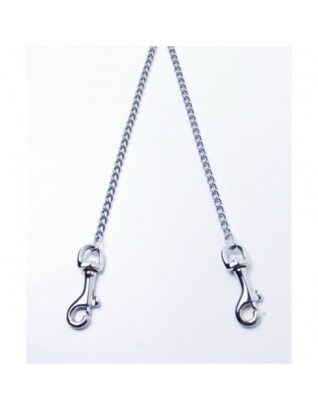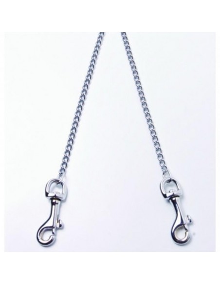 Acople de cadena de acero. Ideal para quienes tienen dos mascotas y quieren pasearlas con un solo ramal. Las 2 cadenas estan unidas por una argolla donde se engancharia el ramal.