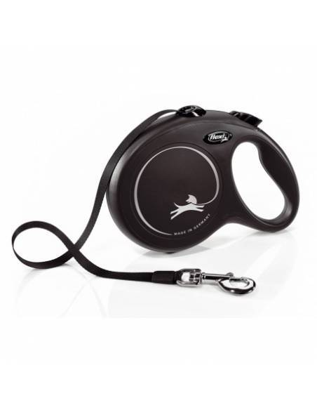 Correa extensible de la prestigiosa marca Flexi. Con 8 metros de cinta y una resistencia de hasta 50 kilos de peso. Para que le des a tu amigo peludo toda la libertad para oler y relacionarse sin perder el control. La correa extensible FLEXI, es la solución ideal para las personas que no quieren dejar a su perro suelto, pero si le quieren dar cierta libertad de movimiento sin renunciar a la seguridad.