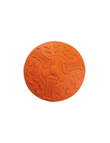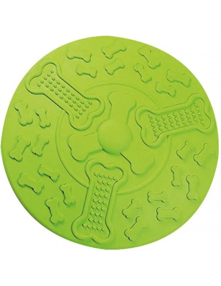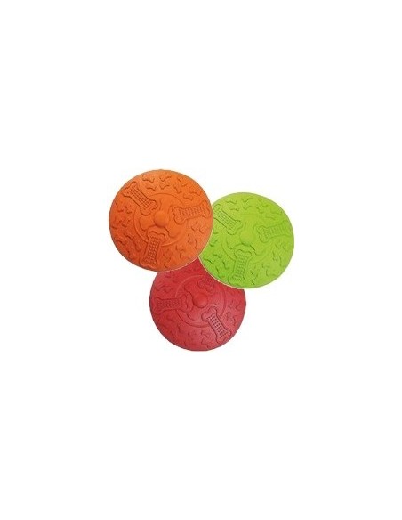 Diviertete con tu perro lanzandole este disco volador 'frisbee' de goma flexible. Al contrario de los discos de plastico este no se rompera con la presion de la mandibula de tu mascota. Disponible en varios colores surtidos.