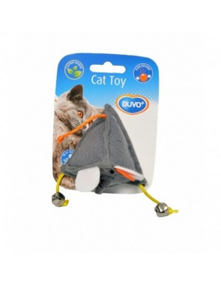Ratón de fieltro con cascabel. Todos los gatos son parciales a los ratones. Este ratón de fieltro con dos campanas vuelve loco a tu gato. El acabado de fieltro hace que el juguete sea aun mas divertido que un ratón de juguete estándar. El juguete contiene mata natural que lo hace irresistible para todos los gatos. Este juguete realmente hace que tu gato quiera jugar!