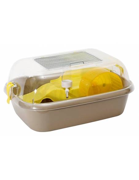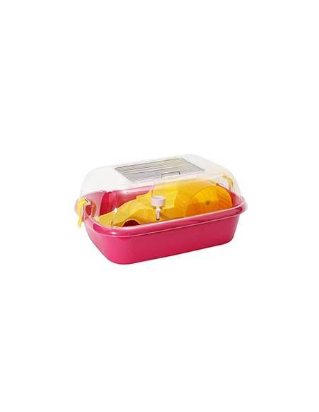 Esta Jaula para pequeños roedores tiene un diseño muy alegre y divertido. Incluye un bebedero, rueda para hacer ejercicio y rampas. La parte superior se puede desmontar para su limpieza, además tiene apertura para poder coger a la mascota con facilidad. Elaborada con materiales muy resistentes y de alta calidad que garantizan la durabilidad del producto. Disponible en colores surtidos.