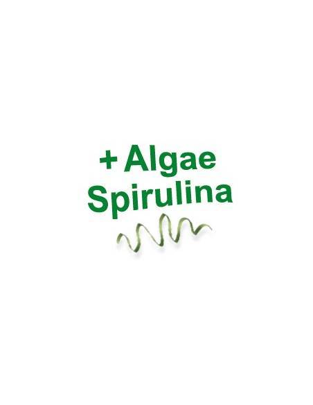 Composición: cereales, pescado y su productos derivados, soja, crustáceos, algas spirulina 2,5%, algas.
