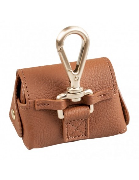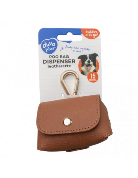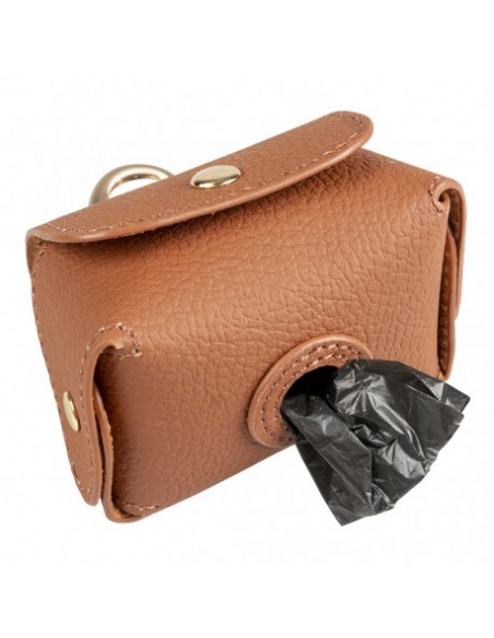 Dispensador de bolsas higiénicas de cuero para perros Ligero y resistente a los golpes. Cierres con automáticos. Enganche con mosquetón. Incluye un paquete de bolsas.