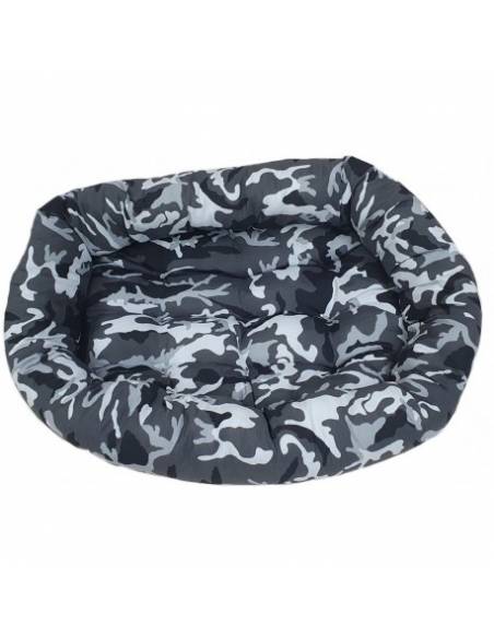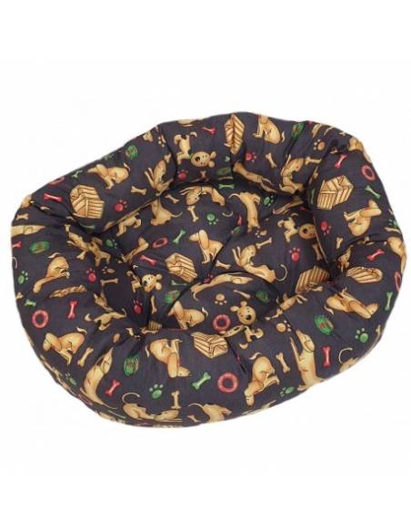 Cama de tela para perros resistente. Confeccionada en una sola pieza (cojín no desmontable para evitar que tu perro lo extraiga). Costuras reforzadas, tejido suave de excelente calidad. Se puede lavar en la lavadora. Colores y estampados surtidos son suministrados al azar. Se venden por separado. Disponible en varias medidas.