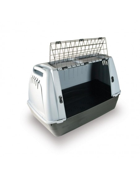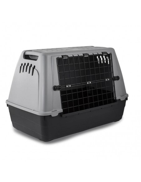 La caja de transporte Baron Van Duvo + es una cesta de transporte resistente para perros. La caja es la forma ideal de transportar a su mascota de forma tranquila y segura, por ejemplo, para una visita al veterinario. La cesta de transporte esta hecha de un plastico resistente a la temperatura, con una puerta de metal y una rejilla en los lados. Las aberturas alrededor y por encima aseguran una ventilacion adecuada y aire fresco.