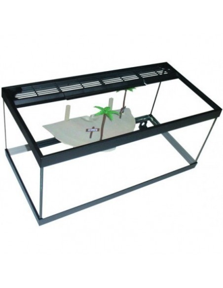 PARA REPTILES. TORTUGUERA DE CRISTAL CON PLAYA Y TAPA. 62 CM (L).